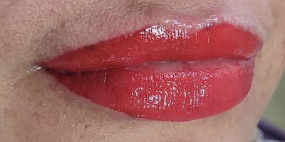 Lip blushing is a full lip service, which applies color across the full lips, for a lip tint effect. We have dozens of colors to choose from to achieve the perfect color for you. Choices range from soft pink and salmon, to bright reds, and bold wine, and everything in between. After the healing process is complete, the lip color will soften to a more natural appearance, akin to a lip tint, as opposed to an opaque lipstick.