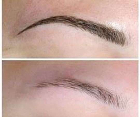 •While either method can apply hairstrokes and powder shading, it is far more common for shading to be applied by machine, and the microblade is used almost exclusively for hairstroke eyebrows.
