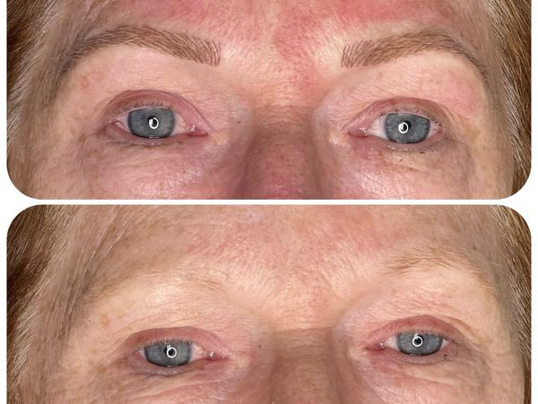 In this case, we had to correct two different colors at once. Poor quality pigments tend to fade into unexpected colors over the years. Hairstrokes, in this case were not an option, as both the red and the blue tones would remain distinctly visible. Nonetheless, we were able to separately neutralize the colors and create a cohesive brow with consistent tone.